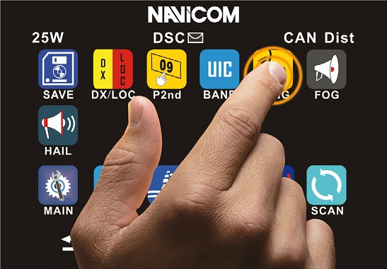 C’est très facile de sélectionner une des nombreuses fonctionnalités accessibles dans la barres de favoris, il suffit de glisser le doigt sur ce superbe écran pour sélectionner le canal VHF sur lequel communiquer.