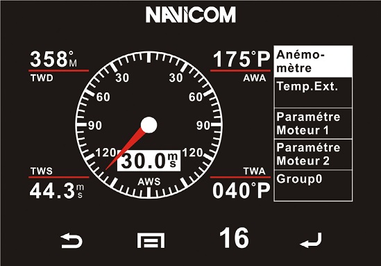Accès facile grâce à des icones spécifiques à toutes les informations de bord circulant sur le réseau NMEA2000.